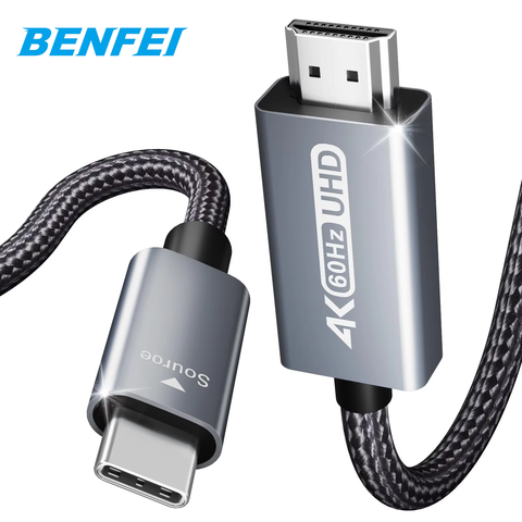 BENFEI USB C HDMI 1.8 metre kablo 4K60Hz alüminyum kabuk naylon örgülü Thunderbolt tipi C HDMI kablosu