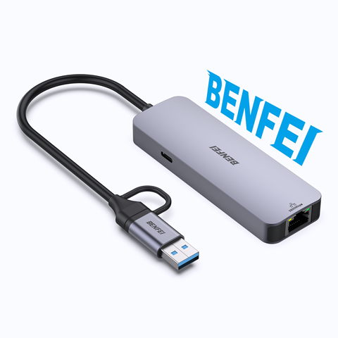 5-IN-1 USB-A/USB-C çok portlu HUB 1000Mbps Ethernet USB3.0x3